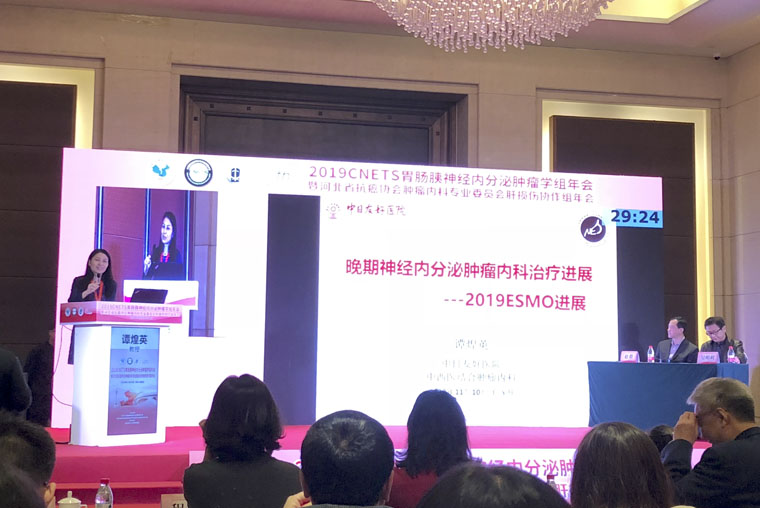 我院副院长赵群教授、内镜室主任吴明利教授主持学术会议。中日友好医院谭煌英教授带来的是2019ESMO神经内分泌肿瘤诊治进展。中日友好医院罗杰教授则是从病理角度为大家讲述了食管神经内分泌肿瘤的病理诊断。北京协和医院程月鹃教授跟大家分享了胰腺神经内分泌肿瘤肝转移的治疗。我院殷飞教授与大家分享了直肠神经内分泌肿瘤治疗,从流行病学、临床表现、诊断治疗及影响直肠NET预后因素等方面进行讲述。诸位专家学者的讲座内容丰富、形式多样,将NETs的最新前沿进展及时传递给各位同仁,同时围绕新的理论、新的技术、新的热点展开讨论。