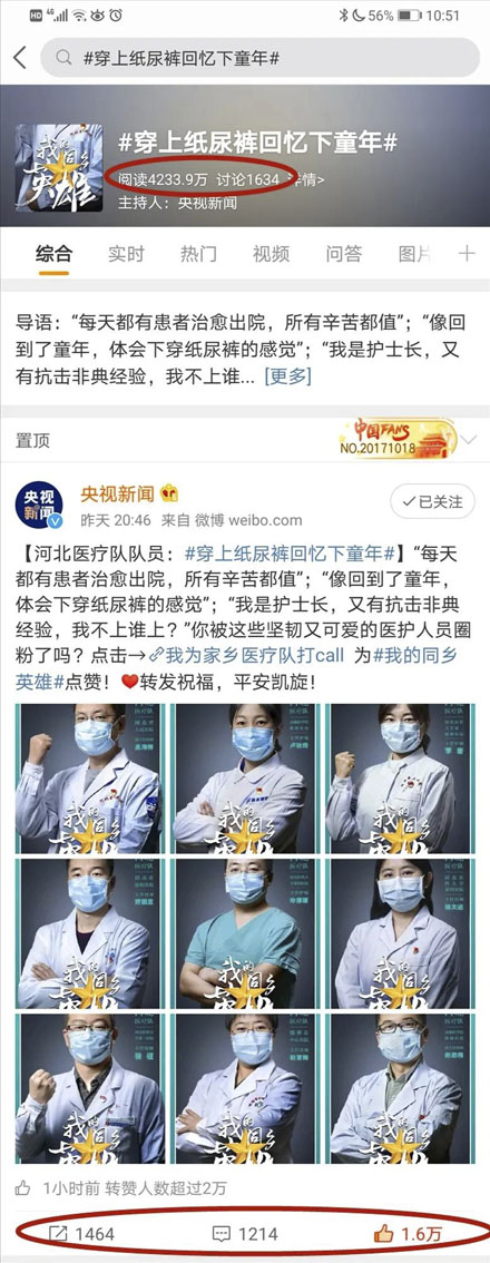 4000万微博超话!央视新闻官方微博、微信号为我院援鄂英雄“定妆”、点赞