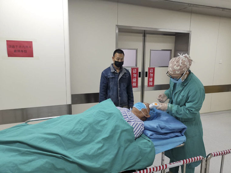 为不遗漏每一个发热病人,科室规定:到病房接病人的时候,一定要与病房护士共同测量患者和家属的体温,反复询问病史、接触史、外出史和家里其他成员的身体状况等,做好筛查,共同确认无发热、咳嗽等疑似症状后,再填写《交接单》,双签字。之后,进行患者转运,到达手术室缓冲间后再次测量。在连台手术之间,要严格执行手术间的清扫流程,指导保洁人员进行彻底处理。根据相关规范等的要求,严格进行手术间的净化,并做好记录。每日手术结束后,院感组根据相关规范和要求,指导保洁员做好终末保洁工作。