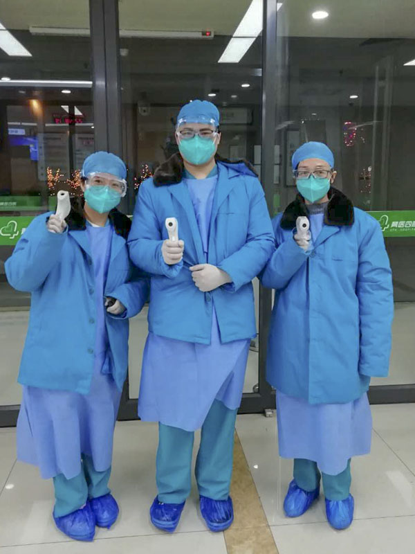 1月23日,春节假期还没开始,袁诗梦、田雅冉、李博寅、李晨阳四位护士在接到去急诊协助筛查患者的通知后,迅速参加了护理部的紧急培训。他们克服困难,放弃了除夕夜陪伴父母的计划,认真学习相关事项,除夕当天,他们以昂扬的精神面貌协助急诊开展工作。