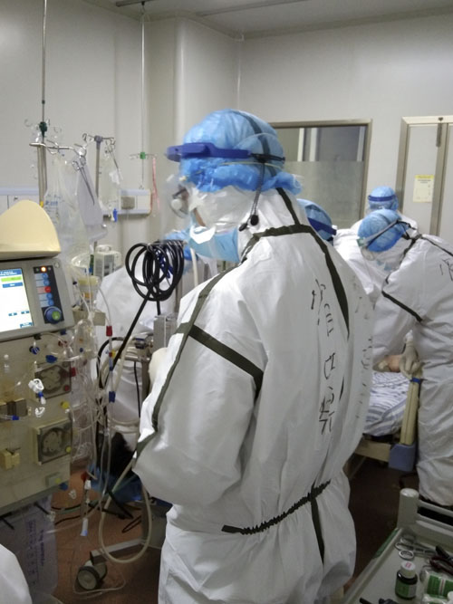 技术尚可学习,人永远是核心和关键。在这里,我们认识到了更多的重症护理同仁和朋友,他们踏实好学,积极肯干,小到更换三通接头、肢体摆放,大到俯卧位的实施、ECMO氧合器的更换。大家谦虚,细致,配合默契,在厚厚的防护服下,一起高质量地完成了空前艰巨的护理任务。我们只有一个共同的目的:保证患者各项治疗的安全性和有效性,争取最好的结局。