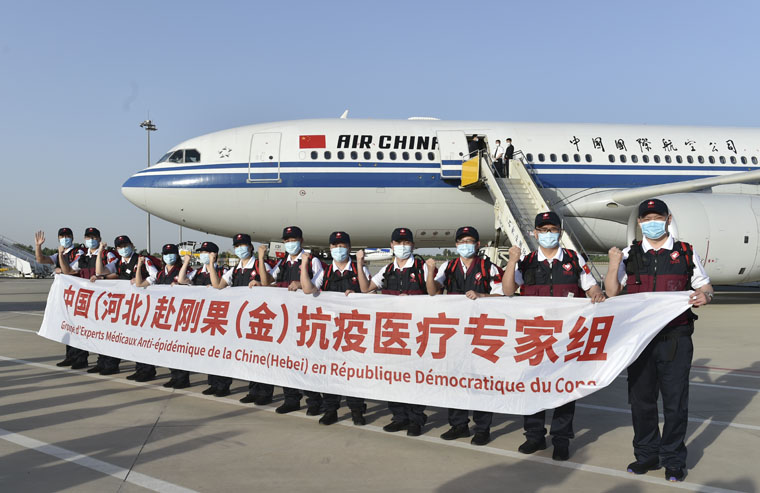 刚果(金)时间5月12日上午7点55分,包括我院CT磁共振科副主任王琦在内的12位河北省援非医疗专家抵达当地首都金沙萨,我国驻刚果(金)大使朱京以及刚果(金)外交部副部长、卫生部副部长冒雨在机场迎接,并举行了欢迎仪式和防护物资捐赠仪式。