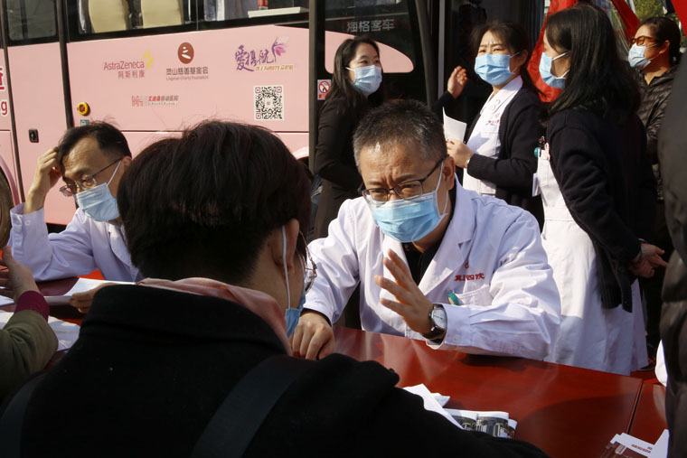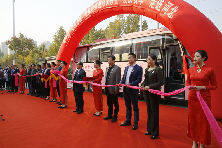 “粉红丝带”作为全球乳腺癌防治的标志性活动,积极倡导早预防、早发现、早治疗的理念,每年的10月定为“乳腺癌防治月”。乳腺癌筛查是提高早期诊断率、生存率及生存质量的最为有效的方法。世界卫生组织(WHO)已明确将早期乳腺癌列为可治愈性疾病,早诊早治是提高乳腺癌治愈率的最佳途径。由我院、无锡灵山慈善基金会及阿斯利康中国联合发起的“河北省乳腺癌移动筛查项目”将以我院为中心,建立全省上下联动的乳腺癌移动筛查模式,提供上门便捷筛查、县级医疗机构乳腺癌筛查及诊治标准化培训指导等多项工作。“爱汝快车”配备有基础的健康查体设施及乳腺超声等设备,开到百姓的家门口,上车就能进行乳腺检查,使广大妇女尤其是贫困地区妇女足不出户即可享受省级医院的同质化检查。