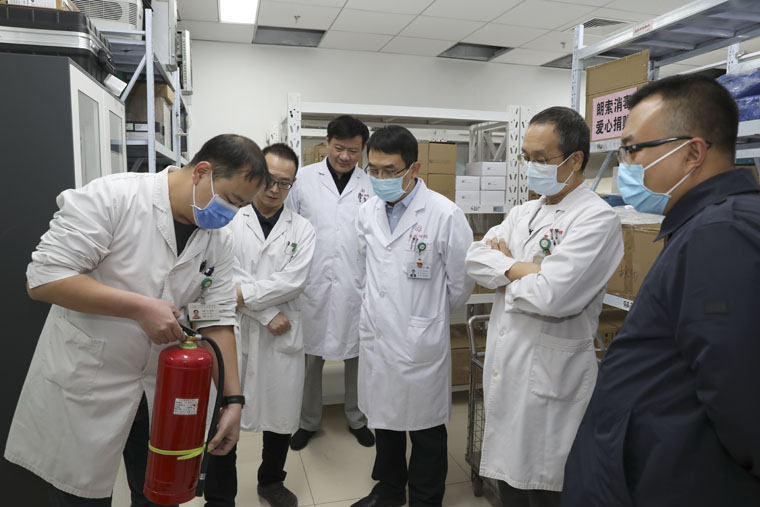 何宏涛副院长一行查看了CT磁共振科的耗材库,对内镜室的药品管理情况进行抽检,针对开展麻醉门诊进行讨论,查看了检验科的新流水线、试剂冷库、纯水机房、UPS间的使用情况,对设备处库房的空间及运行现状实地查看,还对我院部分消火栓等设施设备进行检查。