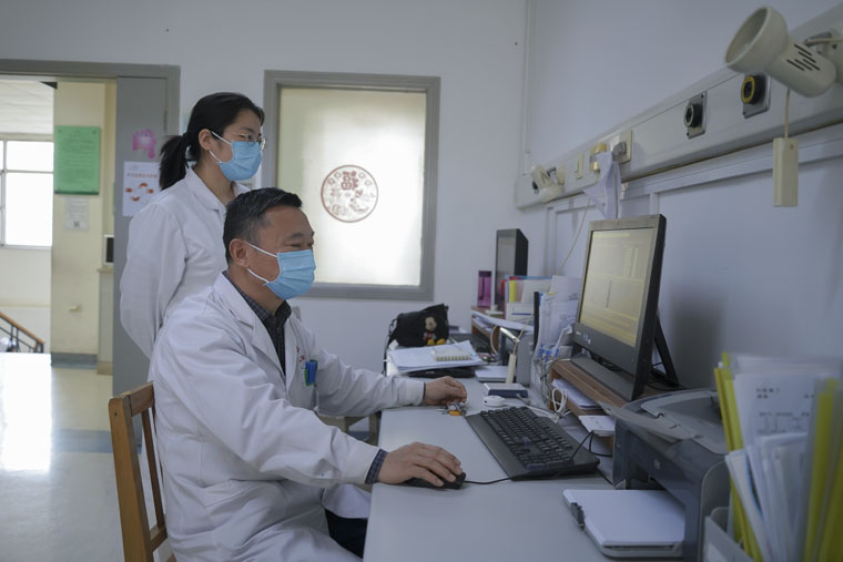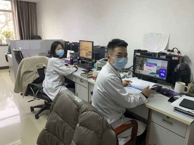 大年初一,妇瘤科牛书怀、刘青进行查房和其他工作。刘青说,“这是我第一次在大年初一坚守岗位,非常光荣,一定把医学的接力棒接稳,跑好。”