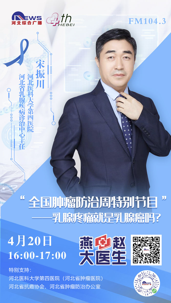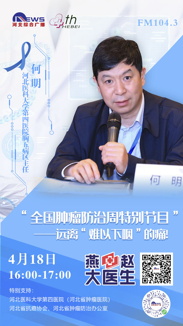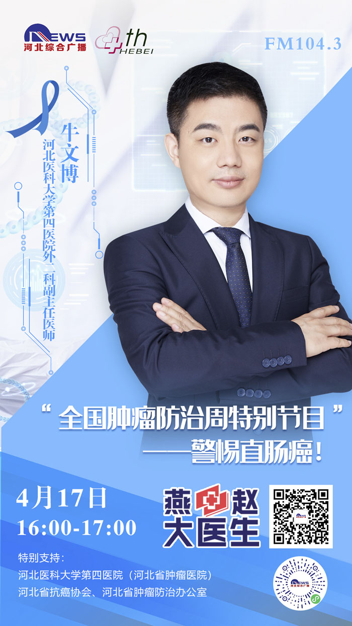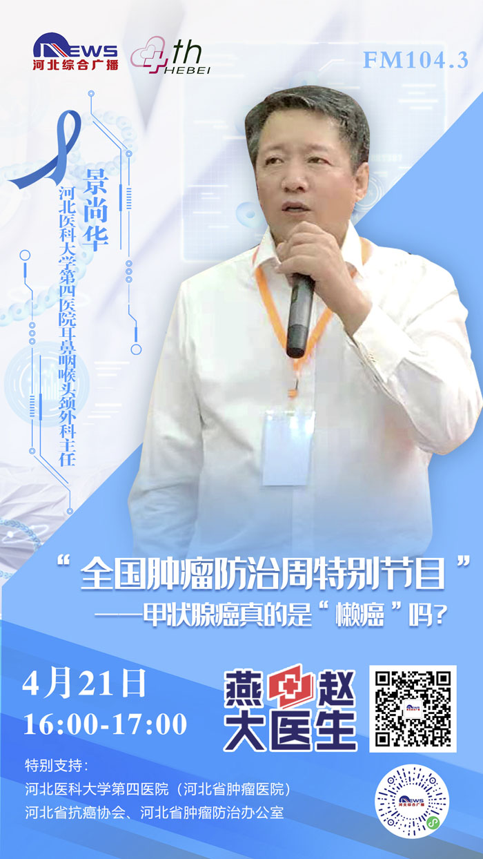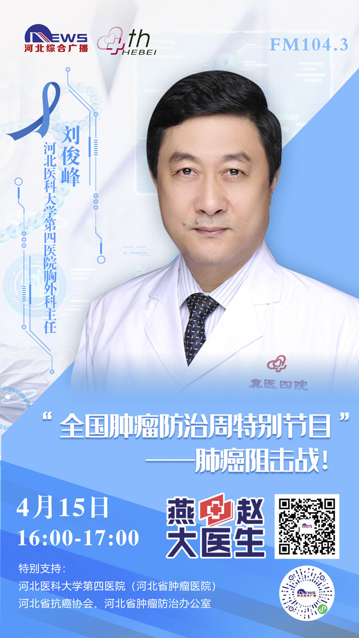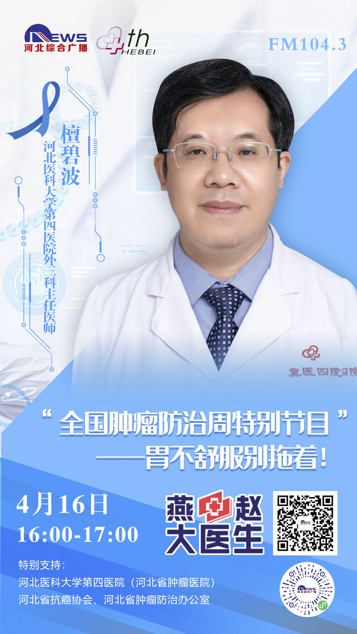 2021415-21日是第27个全国肿瘤防治宣传周,为进一步贯彻党中央、国务院对癌症防治工作的决策部署,推动落实健康中国癌症防治专项行动,提高全社会癌症防控意识,营造全民防癌抗癌的良好氛围,我院与河北广播电视台新闻综合频率《燕赵大医生》共同发起:《科学抗“瘤”,走向新生》“肿瘤科普季”系列直播活动。