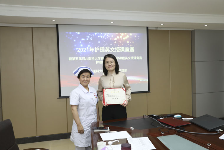 经过激烈角逐,评委从语言仪态、教学内容、教学方法、教学效果等方面对8位选手进行综合评价,最终来自东院乳腺外科的刘磊脱颖而出,成绩优异,将代表我院护理人员参加河北医科大学第五届青年教师医学课程英文授课竞赛。