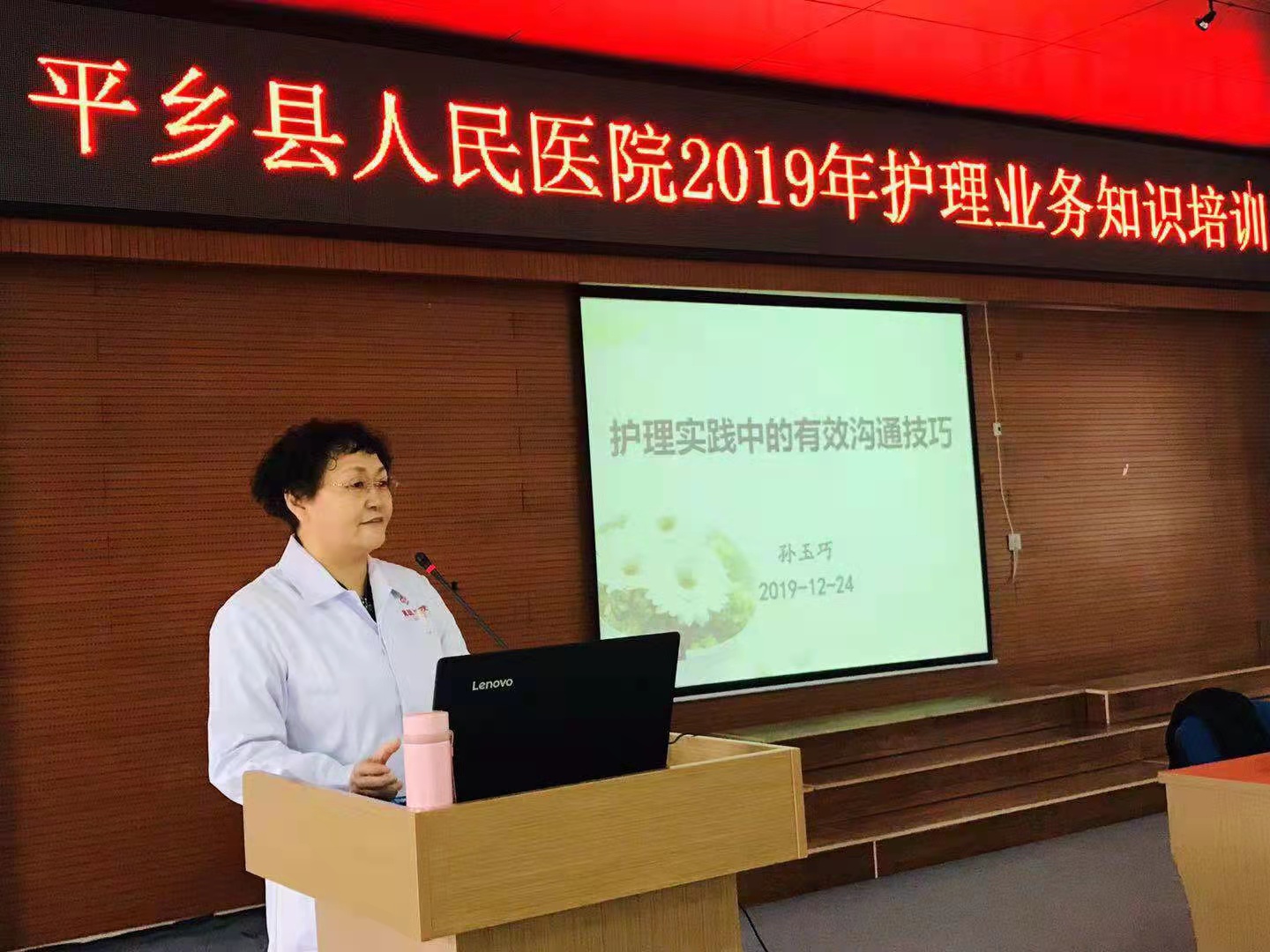 20198月,原乳腺中心孙玉巧护士长来到平乡县人民医院进行对口支援,协助护理部建立了压疮护理、坠床预防及导管护理专业小组,参与医院9个护理质控组的检查督导工作,发现问题并积极整改。她以“如何当好护士长”、“护理实践中的有效沟通技巧”等为主题多次开展培训,参与2019年“服务百姓健康行动”活动,到田付乡村卫生院及平乡中心卫生院进行义诊,把防治肿瘤、糖尿病、高血压等科学知识在基层普及,得到了乡亲们的好评。