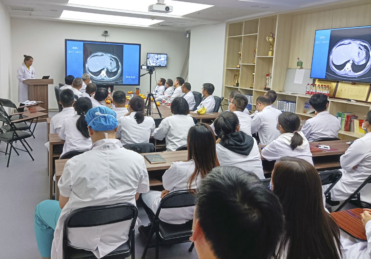 CT磁共振科杨丽主任医师对照临床手术探查情况,对影像资料进行回顾性分析,提出了针对不同患者术前评估的需求采取不同检查方法的建议。随后,外三科范立侨、张志栋、王冬、檀碧波、刘羽,放射科李智岗,CT磁共振科时高峰、王琦、许茜、李如迅、杨丽、李月考、杜煜、刘辉、戴丽娟等针对目前科室在临床诊疗工作中的情况,深入交流、建言献策,提出了很多方便患者就诊的举措。