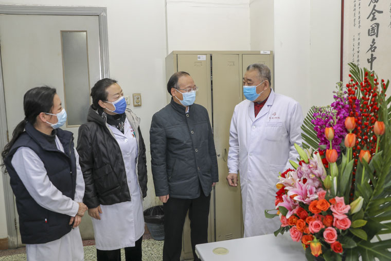 倪铁军副书记一行来到我院中医科门诊,向刘亚娴教授致以新春的问候,亲切询问了他的身体健康状况及工作生活情况,高度赞扬了刘亚娴教授为学校和医院发展作出的杰出贡献。刘亚娴教授对学校和医院党委的慰问和关怀表示感谢,介绍了中医学术发展传承现状,表示将发挥余热,助力学校和医院的高质量发展再上新台阶。