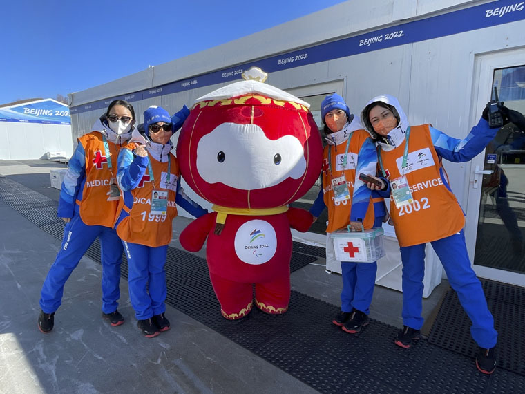 35日是首个比赛日,我院队员们圆满完成了当日的医疗保障任务。值得一提的是,今天诞生了我国运动员在冬季两项场馆夺得的第一枚金牌。看到远处视障的运动员们,有的单手执杖,有的失去双臂,有的需要在引领员指示下前行,但是他们在阳光下自信的微笑却让人感觉无比温暖、充满力量。我们为你们喝彩,中国奥运健儿加油!