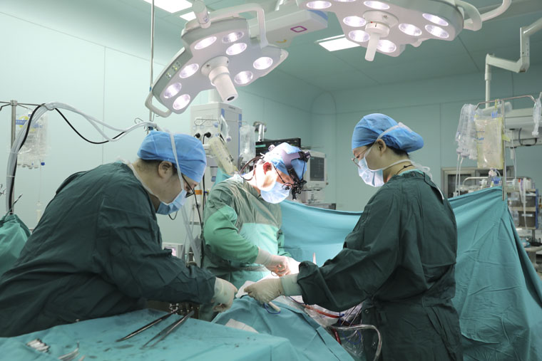 411日傍晚至412日凌晨,历经一整夜的艰苦奋战,在麻醉科、体外循环小组、手术室、输血科、介入科的协作下,心脏血管外科赵永波副主任团队紧急为外地转来的一名危重A型主动脉夹层患者进行“升主动脉置换+主动脉全弓替换”手术,为有效改善患者的远期预后情况,赵永波同期进行了主动脉远端介入治疗。这场历时13个小时的抢救性手术最终顺利结束,患者术后安返心脏血管外科重症监护病房,恢复良好。