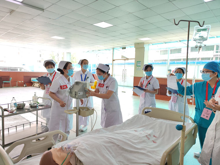 刘运江副院长在观看团体赛后,对本次竞赛的整体策划予以高度评价。他指出,这次考核形式非常贴近临床,真正起到了以赛代练的积极作用。今后在对青年医护人员的危重患者抢救训练中,要多采取医护共同参与的情景模拟式培训考核,不断增强我院护理人员的专业能力。
