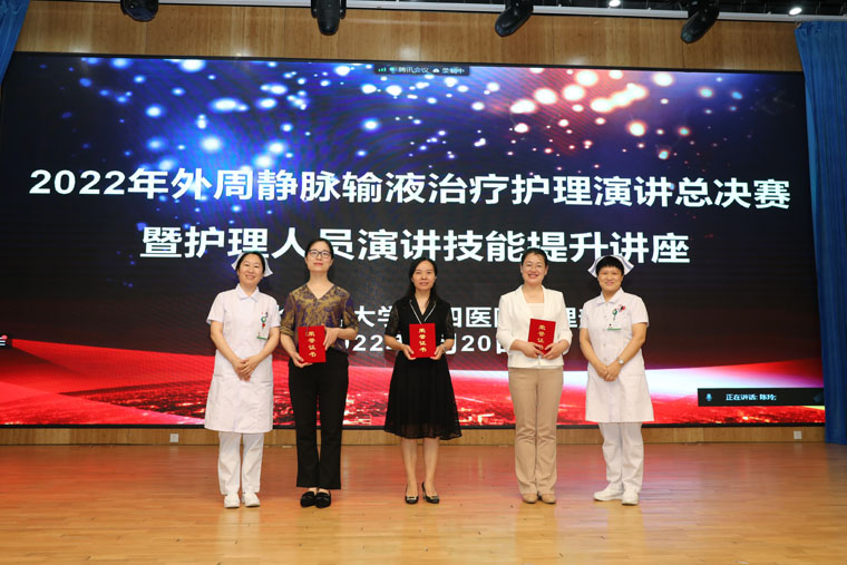 本次活动分为演讲竞赛和讲座两个环节,评委由崔妍老师、护理部主任、副主任和临床静疗护理专家共同组成。参赛选手是两个院区经初赛选拔出的6位护士长。大家从血管通路产品与技术创新、降低外周静脉治疗堵管发生率、外周通路并发症的预防与处理、特殊专科质量控制(放射、儿科、急诊等)、静脉治疗教育培训、专科护士培训等方面进行选题,演讲内容紧贴临床,具有创新性和实用性。