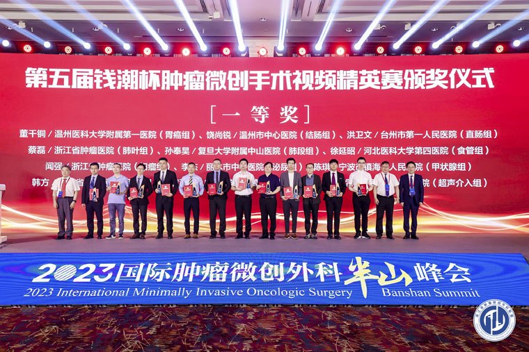 5月26日-28日由浙江省抗癌协会、浙江省医师协会、浙江省肿瘤医院主办,浙江省肿瘤微创外科联盟承办、浙江省肿瘤诊治质控中心、肿瘤学杂志社协办的“2023国际肿瘤微创外科半山峰会”在杭州举行。作为本次会议的重要部分,第五届“钱潮杯”肿瘤微创手术视频精英赛,吸引了来自全国400多名医生报名最终100人进入决赛我院胸外科五病区徐延昭医生带来的“新辅助免疫治疗联合化疗后全腔镜食管癌切除术”,赢得了评委的一致称赞,获得微创手术视频精英赛食管组一等奖。
