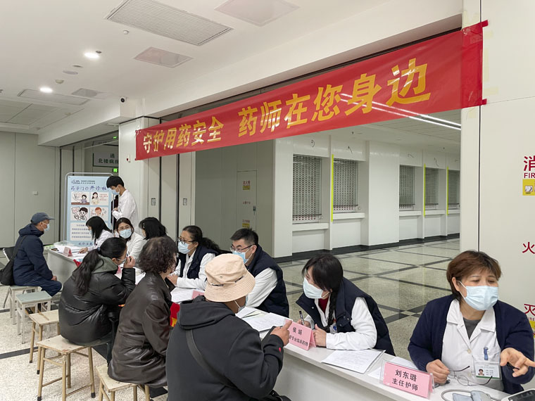药学部工作人员以通俗易懂的语言为患者普及用药知识,发放合理用药宣传页,贴心提供血压测量等服务。现场发放了关于药师药学服务认知的调查问卷百余份,广大患者家属积极填写,为药师下一步提供更精准、有效的药学服务提供有力支撑。