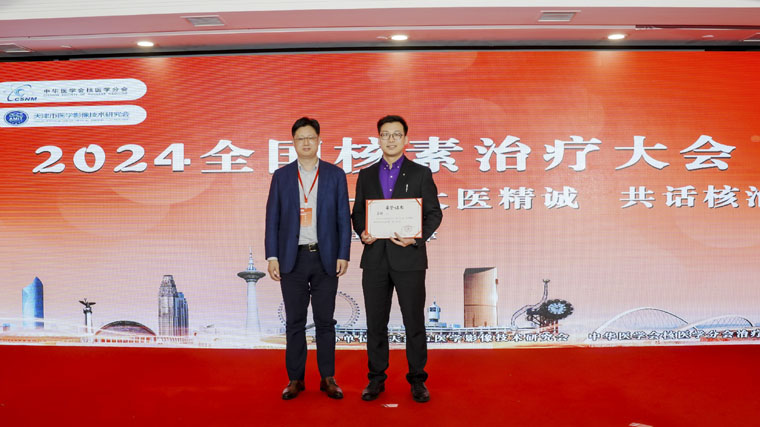 3月29-30日,由天津市医学影像技术研究会主办,中华医学会核医学分会治疗学组提供技术指导的中国核素治疗大会在天津举办,主题为“大医精诚 共话核治”。科普大赛作为本次大会的重要环节之一,吸引了来自全国35家单位的48位选手参加,经过初赛、决赛的激烈角逐,我院核医学科马拓医师、董博技师的作品《核医有说唱——甲状腺癌诊疗一体化》获得本项赛事第一名。
