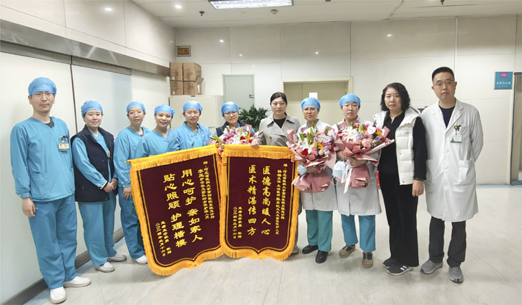近日,东院区急诊科内发生了感人的一幕:离世老人王奶奶的家属手捧绣有“医德高尚”“亲如家人”的两面锦旗和鲜花,对东院区急诊科韩梅副主任、李玉护士长、张东红主治医生等医护人员的精湛医术、贴心护理和尽职尽责的态度表示诚挚的感谢和高度认可。安顿好老人的后事,两个儿子和儿媳表示,回忆起多年来到东院急诊的就医经历,总会陷入深深的感动……
