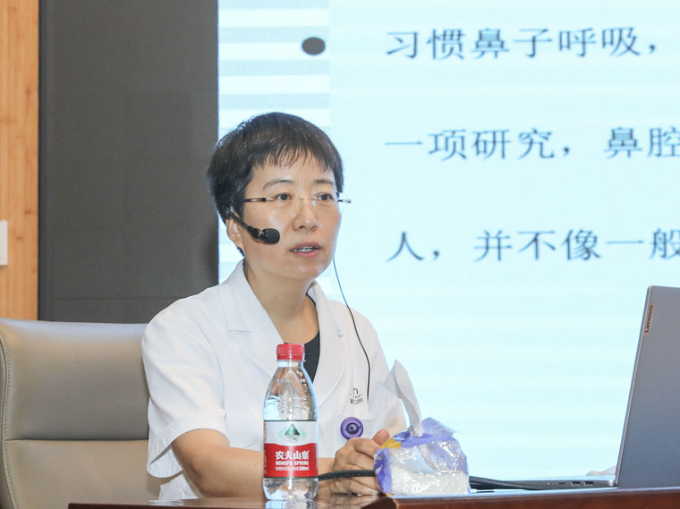 王建英主任医师围绕“身体怎么知道要呼吸”“鼻呼吸与口呼吸”“胸式呼吸与腹式呼吸”“闭气与谐振式呼吸”以及“学员呼吸练习经验分享”5个方面展开演讲。她指出,呼吸作为生命的基本活动,往往在日常生活中被人们忽视。正确的呼吸方式不仅可以改善身体健康,还能缓解心理压力,提升生活质量。