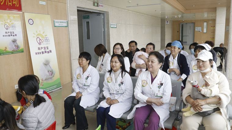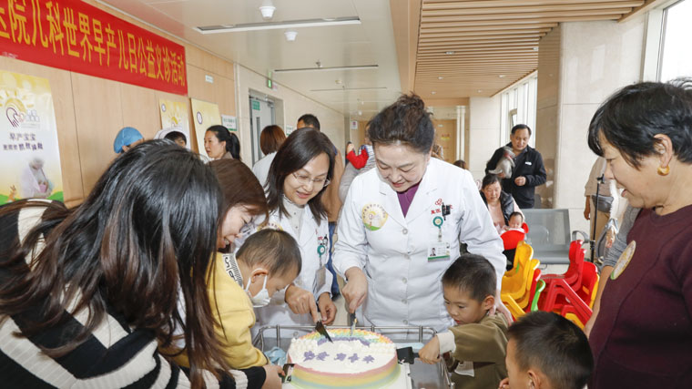 活动现场,刁玉巧主任、江莲教授为早产宝宝送上祝福,并强调了肌肤接触对早产儿的好处。本次活动还邀请了产科史丽主任、李秀荣护士长和董家男副护士长参加。史丽主任表示,看到早产儿有如此好的预后,是产儿科联动共同保障母婴健康的结果,今后将继续加强产儿科高效协作,为新生儿健康护航。一位26+1周早产宝妈分享了宝宝住院时的心路历程,她表示,我们充分信任医护人员,积极配合,宝宝现在已经4个月了,非常健康。这给了在院的早产儿家长极大的信心。