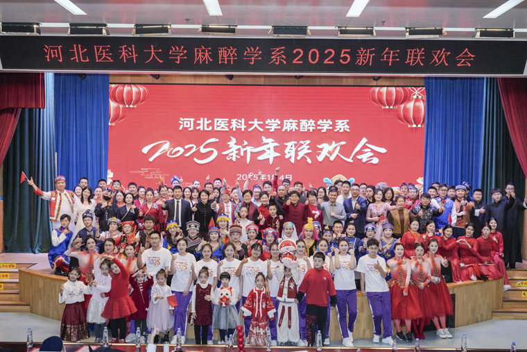 会议同期举行了河北医科大学麻醉学系2025新年联欢会,来自各教学医院的老师们和同学们齐聚一堂,还特别邀请到了《中华麻醉学杂志》编辑部和全国第47期客座编辑学习班青年才俊加盟,大家共同庆祝新年的到来。节目自编自演,形式多样,情意浓浓,喜气洋洋,体现了麻醉学系大家庭的团结奋进与欢乐祥和。