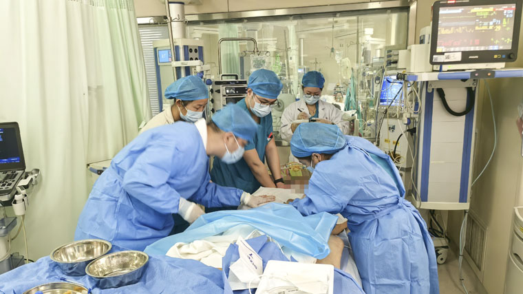 在ICU的病房里,还有一位高龄重症肺炎患者,让医护人员操碎了心。这位患者已经75岁,身体机能衰退,抵抗力较弱,加上刚经历了主动脉夹层这样的大手术,身体非常虚弱,又不幸感染重症肺炎,合并急性肾功能衰竭,病情复杂危重,治疗难度极大。