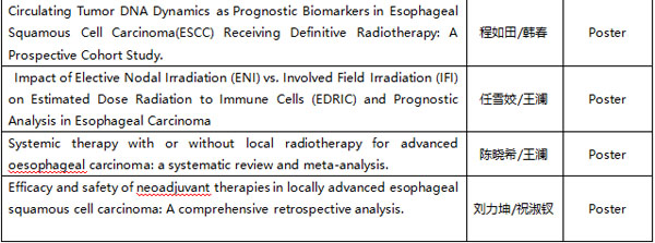 我院放疗科王军教授作为学科带头人,带领各位主任和其团队提交的多项研究凭借创新性和临床价值获得大会高度认可。其中,题为《Dosimetric Parameters of the Heart and its Substructures Predicting Survival and Cardiac Events in Lung Cancer Patients after Radiotherapy: A Systematic Review and Meta-Analysis》的口头报告,从全球数千份投稿中脱颖而出,向国际同行展示了我院在肿瘤精准放疗领域—放射性心脏损伤方面的重要进展。16项壁报展示则分别从放疗与系统治疗最佳联合时机及模式、联合治疗毒性管理、生物标志物探索、综合治疗策略等角度,系统呈现了我院在食管癌、肺癌等领域的长期临床积累与技术储备。