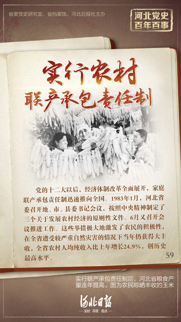 党史学习教育|河北党史百年百事五十六:实行农村联产承包责任制