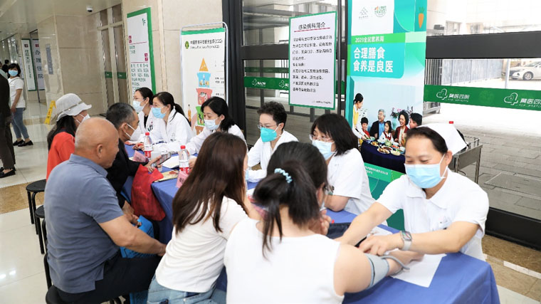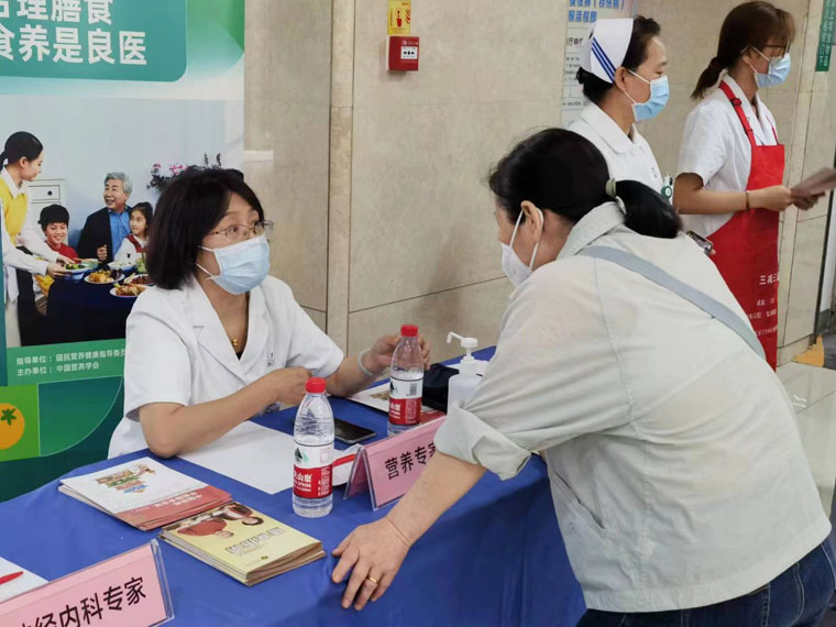 517日,临床营养科联合心血管内科、神经内科、内分泌科、生殖医学科等专家在医院门诊大厅举办了营养咨询义诊活动,立足于2023年新版高血压、高脂血症、糖尿病及儿童青少年生长迟缓食养指南,契合“食养是良医”的主题,为广大患者朋友提供有关日常饮食指导、降血压、降血脂、降血糖及备孕减重等医学咨询服务。医务人员针对适配“三高”等基础疾病的日常食养做指导和宣教,同时发放“中国居民膳食指南”等宣传册及限油壶、限盐勺,旨在让更多人了解营养相关知识,改善居民不良饮食习惯。很多来诊人员表示,“通过参加活动了解了很多日常饮食知识,认识到许多疾病的治疗和长期维持都和‘食养’脱不开关系,希望日后能有更多这样的机会了解营养。”