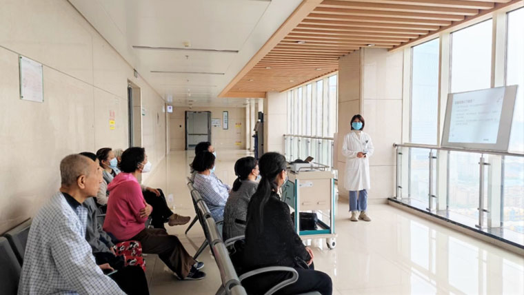 每间隔两周的周四下午,临床营养科营养师会定期到内分泌科病房,向糖尿病患者进行科学饮食与健康管理宣教。饮食疗法是糖尿病综合治疗的基础,合理控制总能量的摄入及恰当选择食材,有助于血糖的平稳控制,发挥药物治疗的最大作用,并提高患者生活质量。