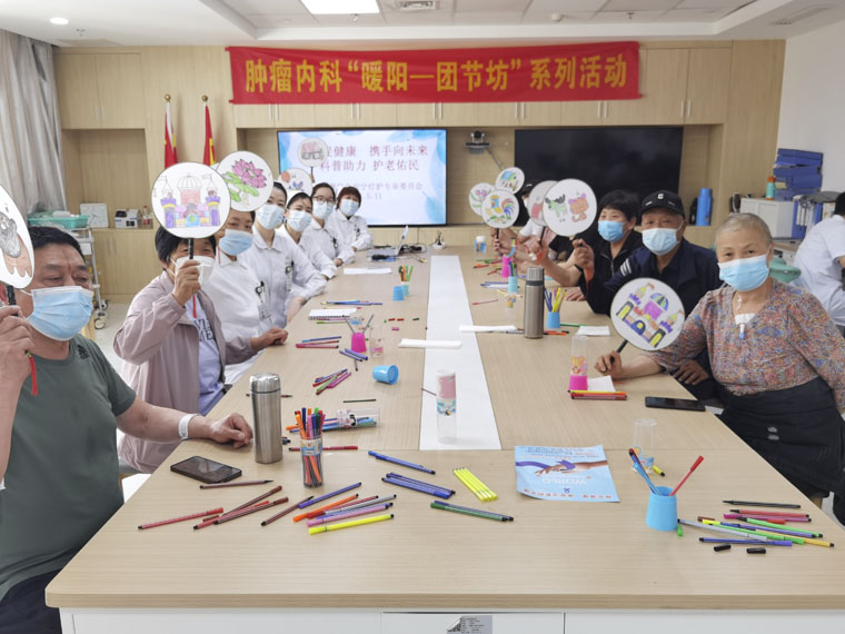 2014年团队组建“暖阳心理”人文关怀工作室,制定详细的工作制度、计划与内容致力于满足患者需求,帮助提高生活质量。2017年团队增加绘画治疗内容,将绘画艺术融入心理治疗中。截至目前,进行绘画治疗宣教千余人次,个体治疗500余人次,进行“非常规”团体治疗30余次,为广大患者创造“情绪出口”,有助于打开内心世界,释放自身压力,促进患者后续治疗顺利开展