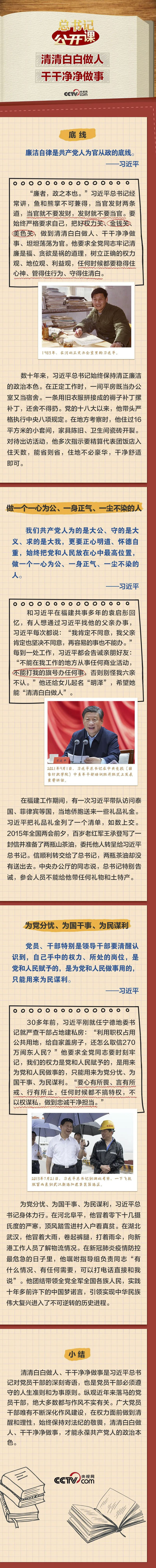 清清白白做人、干干净净做事,数十年如一日,习近平总书记身体力行。他说:“人民把权力交给了我们,我们在使用权力的时候就要让人民放心。”这一期《总书记“公开课”》聚焦总书记关于“清白做人、干净做事”的思考与实践,让我们一起领悟。