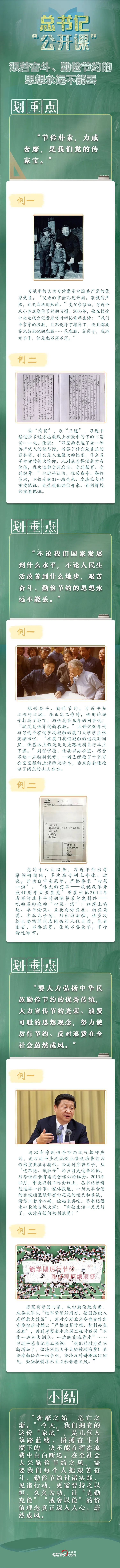 新的征程需要每一个中华儿女鼓足干劲。“节俭朴素,力戒奢靡,是我们党的传家宝。”习近平总书记一直提倡“厉行节约、反对浪费”的社会风尚,并率先垂范、以身作则。本期总书记“公开课”让我们与总书记一起,把“艰苦奋斗、勤俭节约”深植于心并付诸实践。