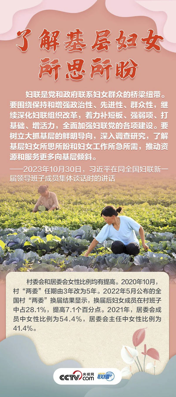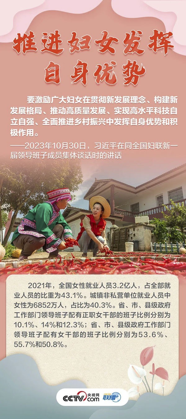 “妇联是党和政府联系妇女群众的桥梁纽带。”10月30日,习近平总书记同全国妇联新一届领导班子成员集体谈话并发表重要讲话,高度肯定巾帼力量,并为新形势下妇女事业和妇联工作发展指明方向。