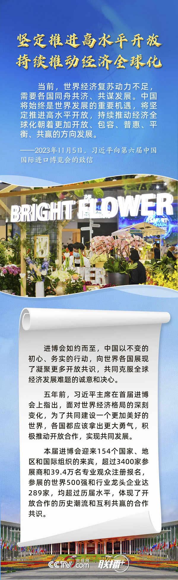 “中国扩大高水平开放的决心不会变,同世界分享发展机遇的决心不会变,推动经济全球化朝着更加开放、包容、普惠、平衡、共赢方向发展的决心不会变。”五年来,习近平主席在进博会上宣布一系列重大开放举措,充分彰显了中国致力于促进世界经济包容性增长,建设开放型世界经济的信心与决心。