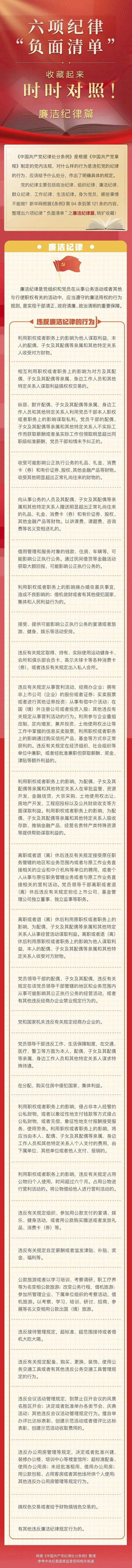 党纪学习教育微课堂 | 六项纪律“负面清单”之廉洁纪律篇